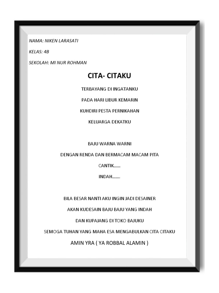 Nah buat sobatsiana yang hibi baca pantun atau saat ini sedang mencari referensi pantun cita-cita maka dapat mengutip kumpulan pantun yang sudah saya sajikan di bawah ini. About Press Copyright Contact us Creators Advertise Developers Terms Privacy Policy. Puisi Tentang Cita Cita Menjadi Desainer.