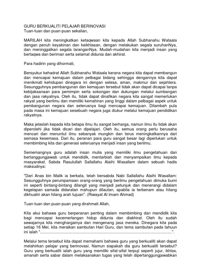 Sebaliknya lahir tokoh-tokoh besar dari guru yang luas keilmuannya. Oleh karena itu sangat pantas dan wajar banyak penyair membuat untaian kalimat indahnya untuk mendiskripsikan. Anganku melayang ke masa depan.